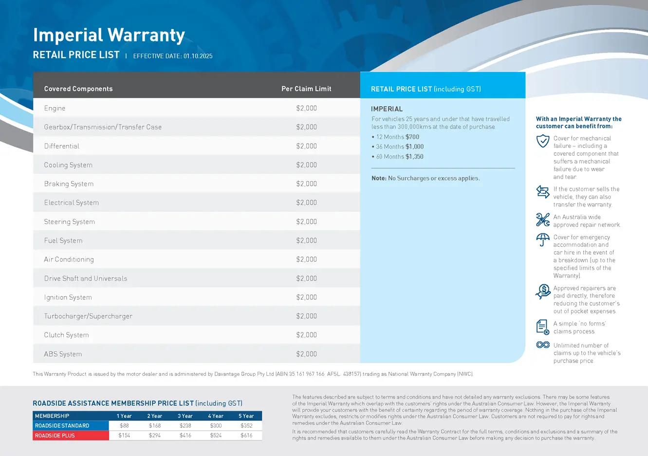 The Imperial Warranty covers only the NON-HIGHLIGHTED items on the Fact Sheet.